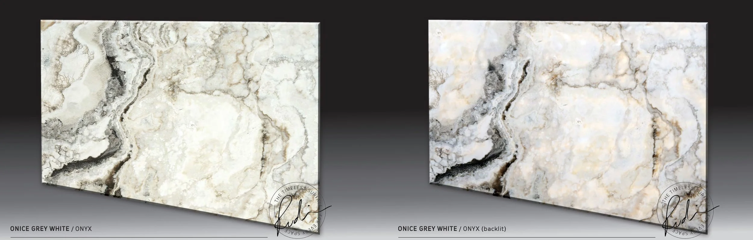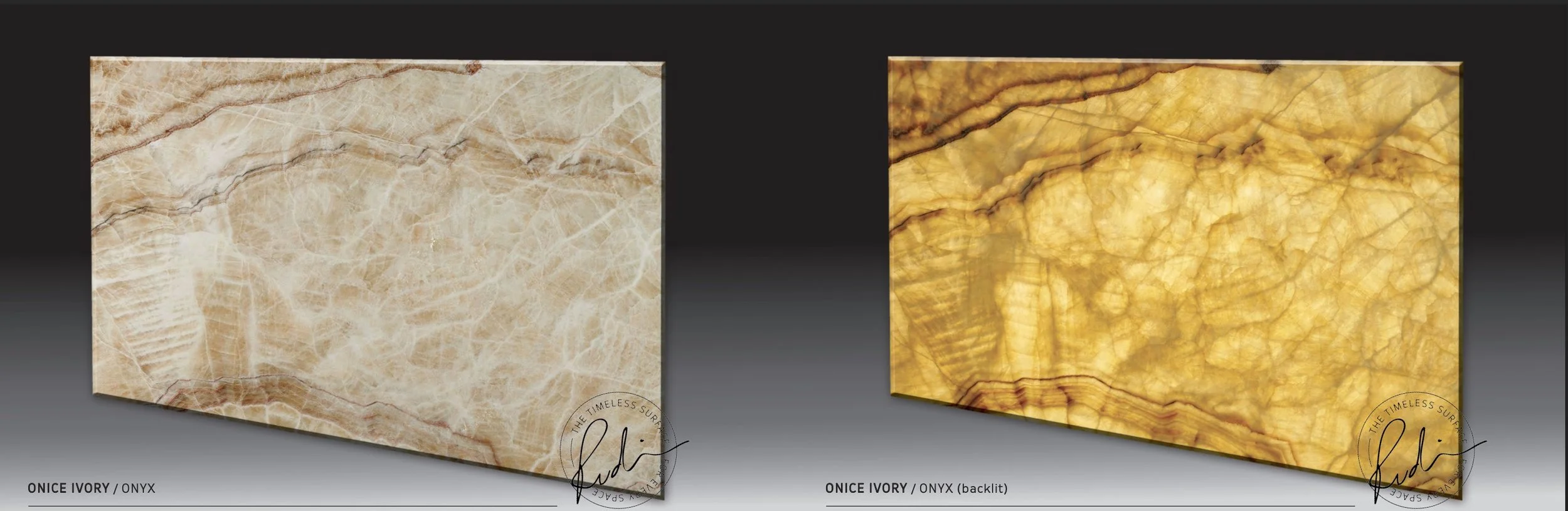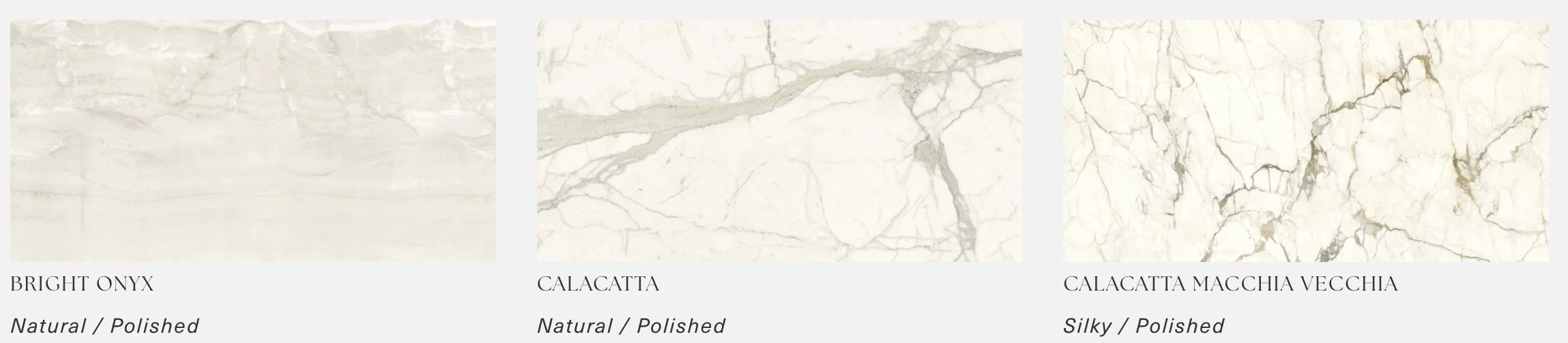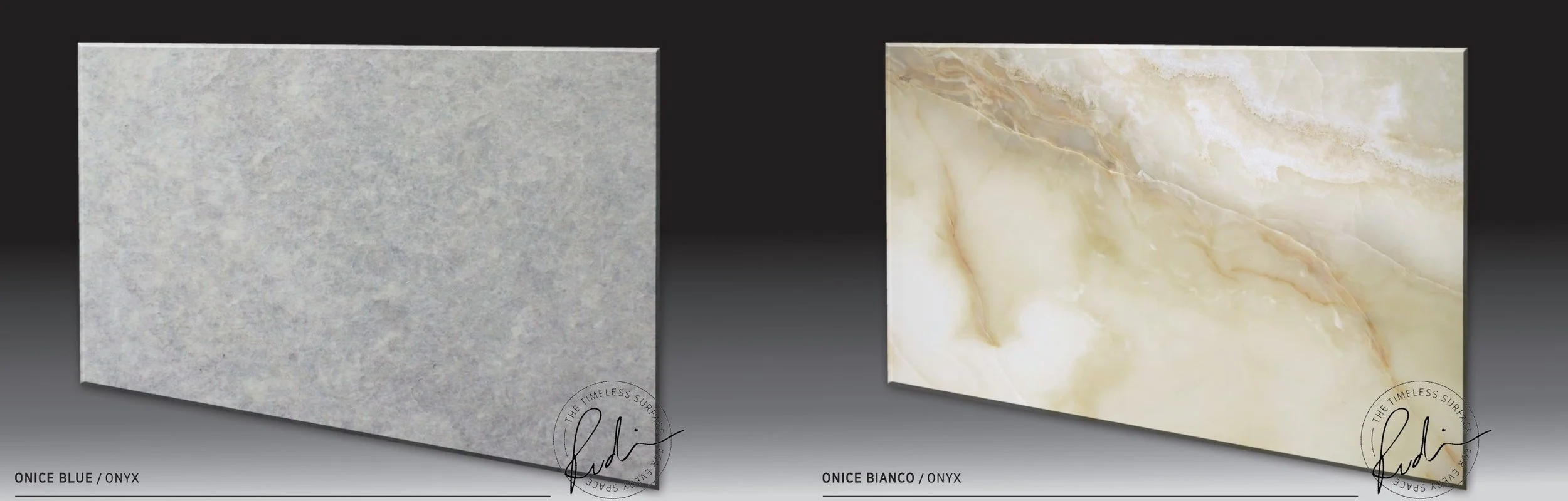 Onyx Porcelain embodies pure elegance β a luminous surface that mirrors the depth and beauty of natural onyx, refined through the strength of porcelain. Sophisticated, timeless, and effortlessly luxurious.