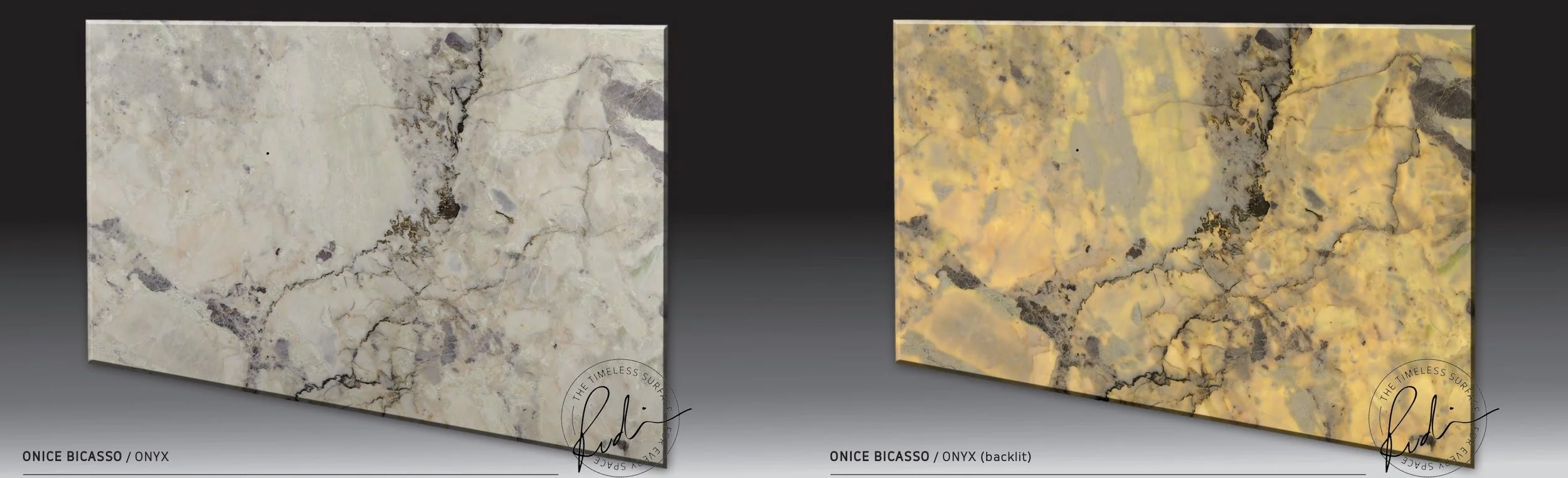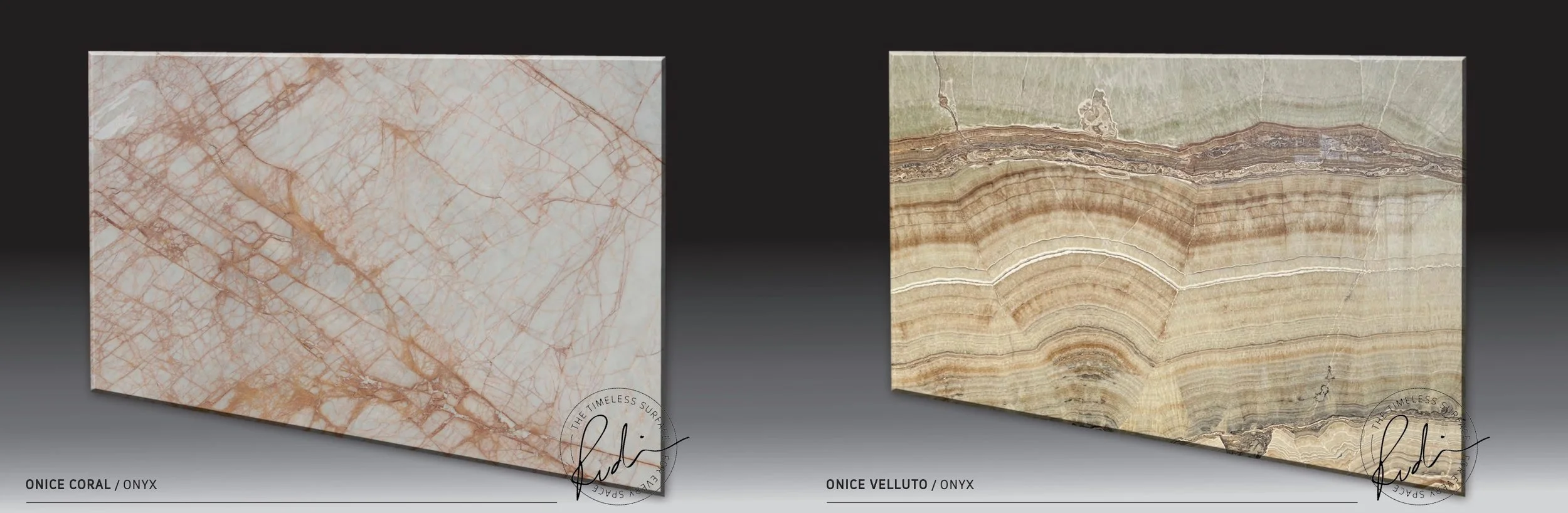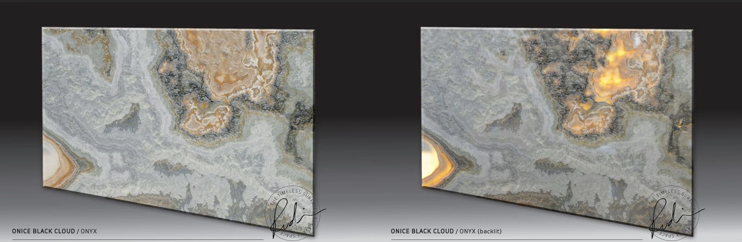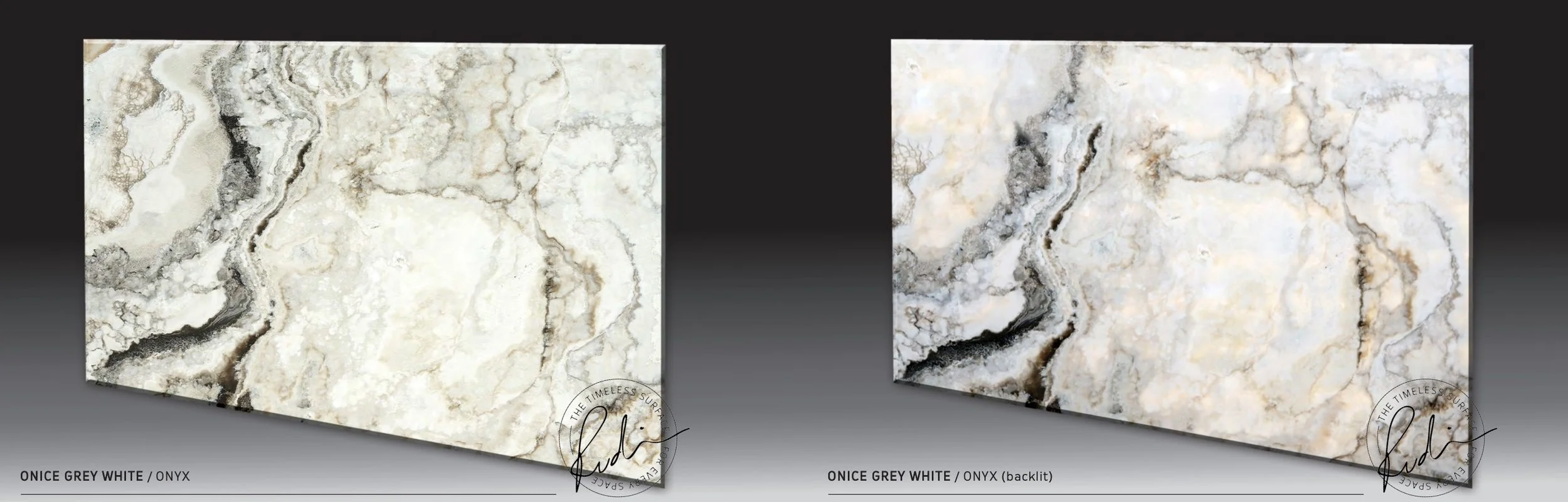Onyx Porcelain embodies pure elegance β a luminous surface that mirrors the depth and beauty of natural onyx, refined through the strength of porcelain. Sophisticated, timeless, and effortlessly luxurious.