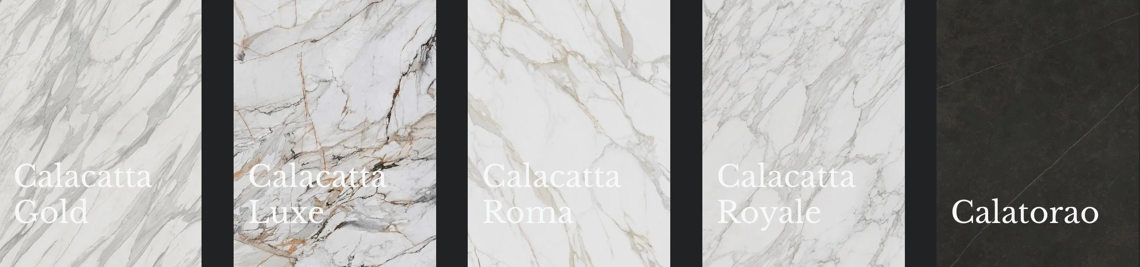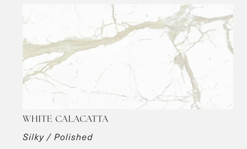 With its lustrous white background adorned with mesmerizing grey-gold veins, this masterpiece captures the timeless allure of natural Calacatta marble.